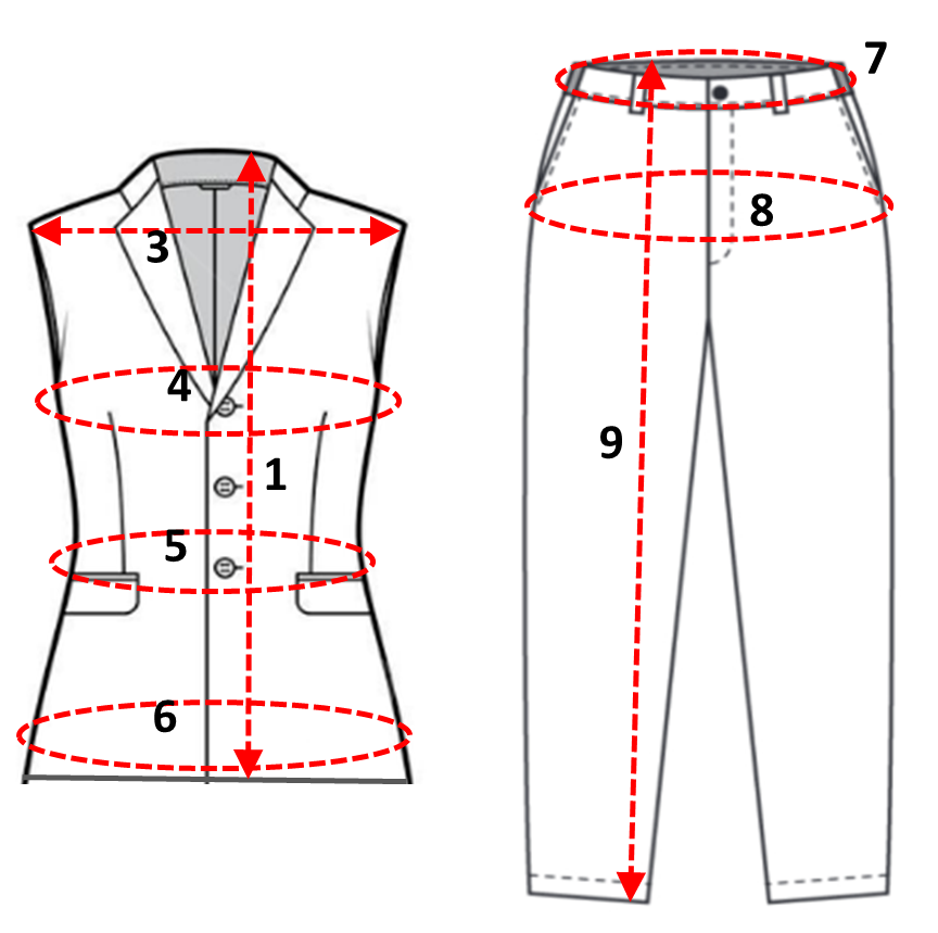 Medidas - Conjunto Feminino com Colete - sem Manga